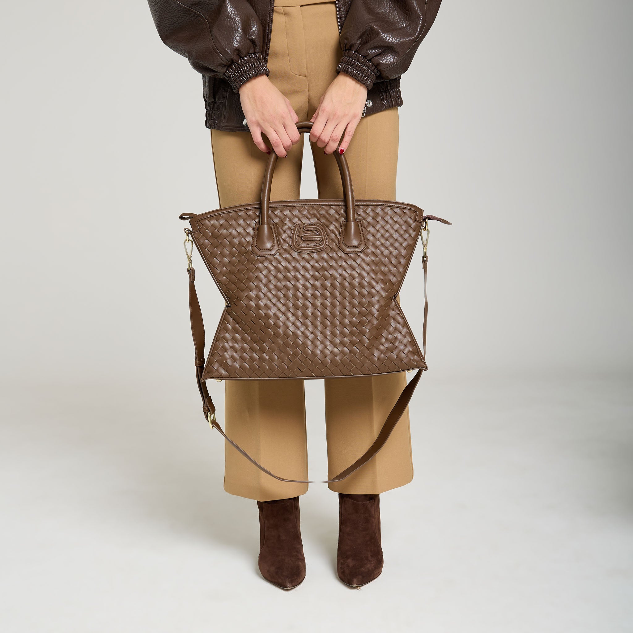 Realizzata con un esclusivo intreccio soft-touch, è leggera ma ricca di carattere.