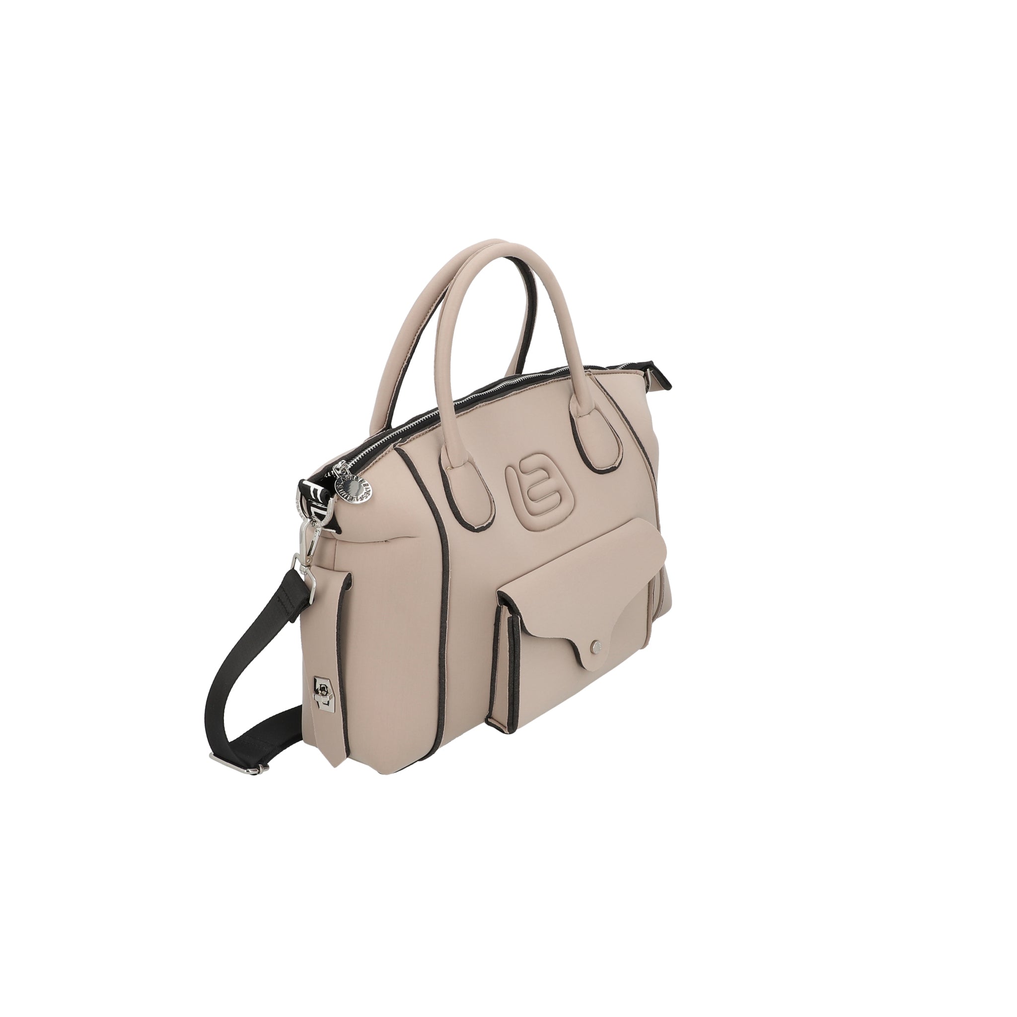 Dotata di doppio manico e tracolla regolabile/removibile, si porta a mano o crossbody con versatilità.